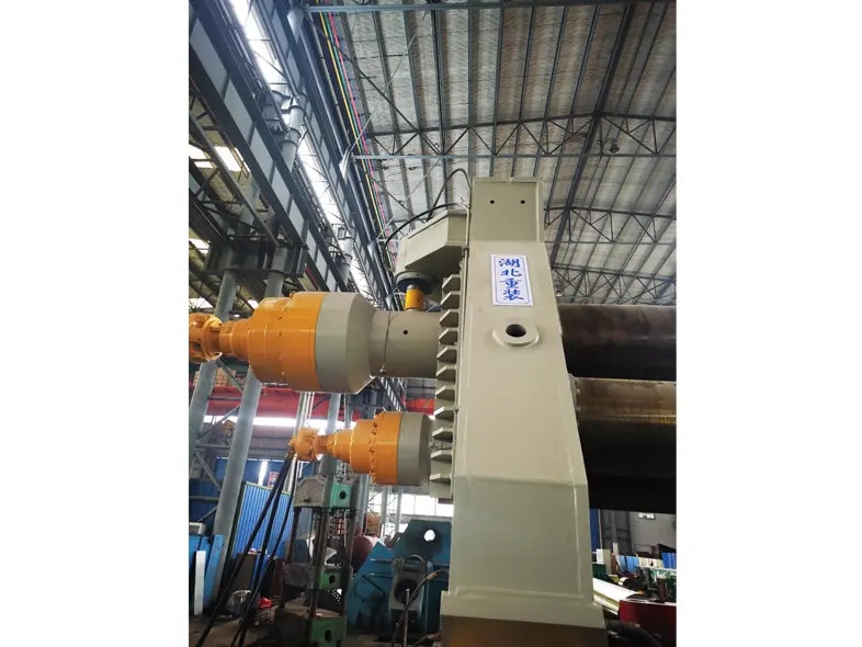 5. 四輥卷板機預(yù)彎曲:將前后輥調(diào)整到工作所需的相應(yīng)位置,并啟動上輥進行成型和彎曲。